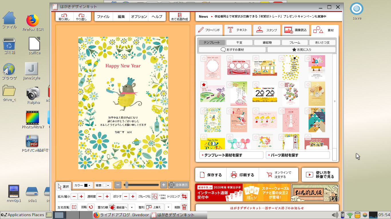 超軽量linux 無料の年賀状作成ソフト はがきデザインキットをインストール Linux Puppylinux 年賀状作成 無料 Puppy Linux 非公式 サイト